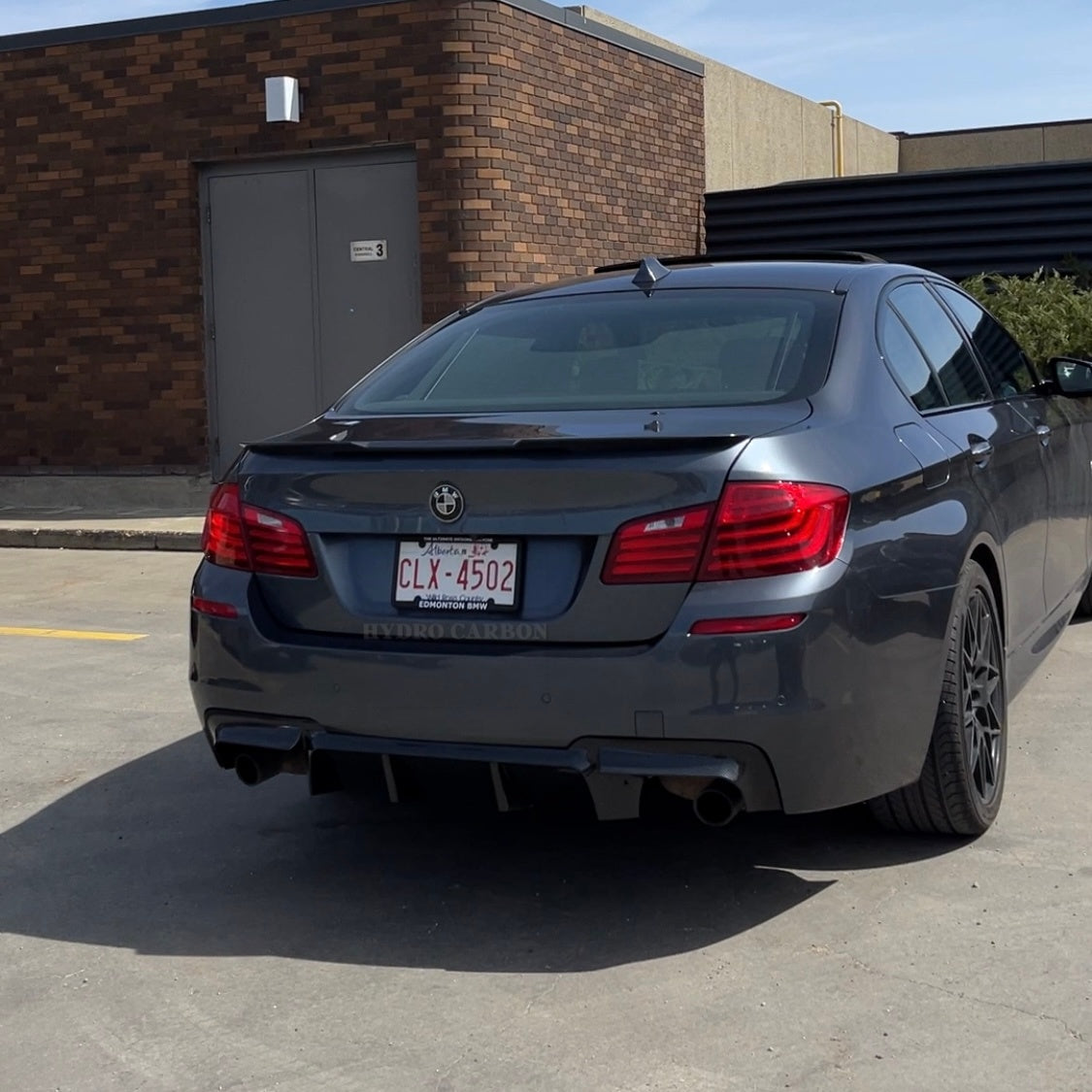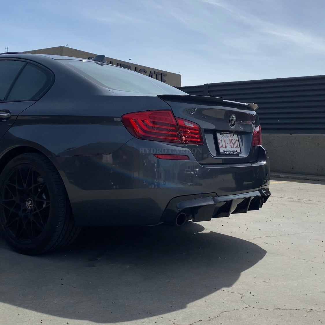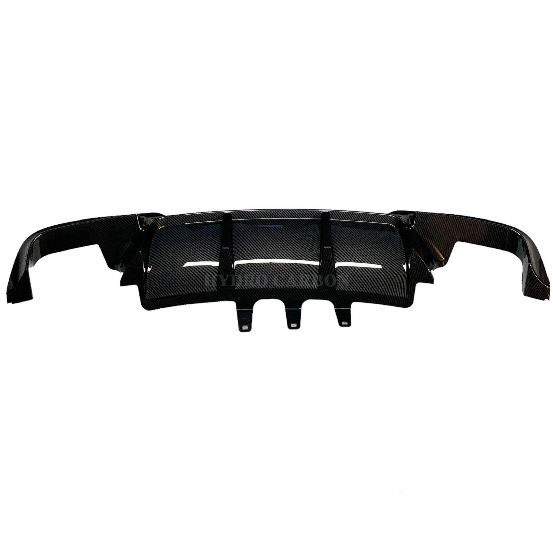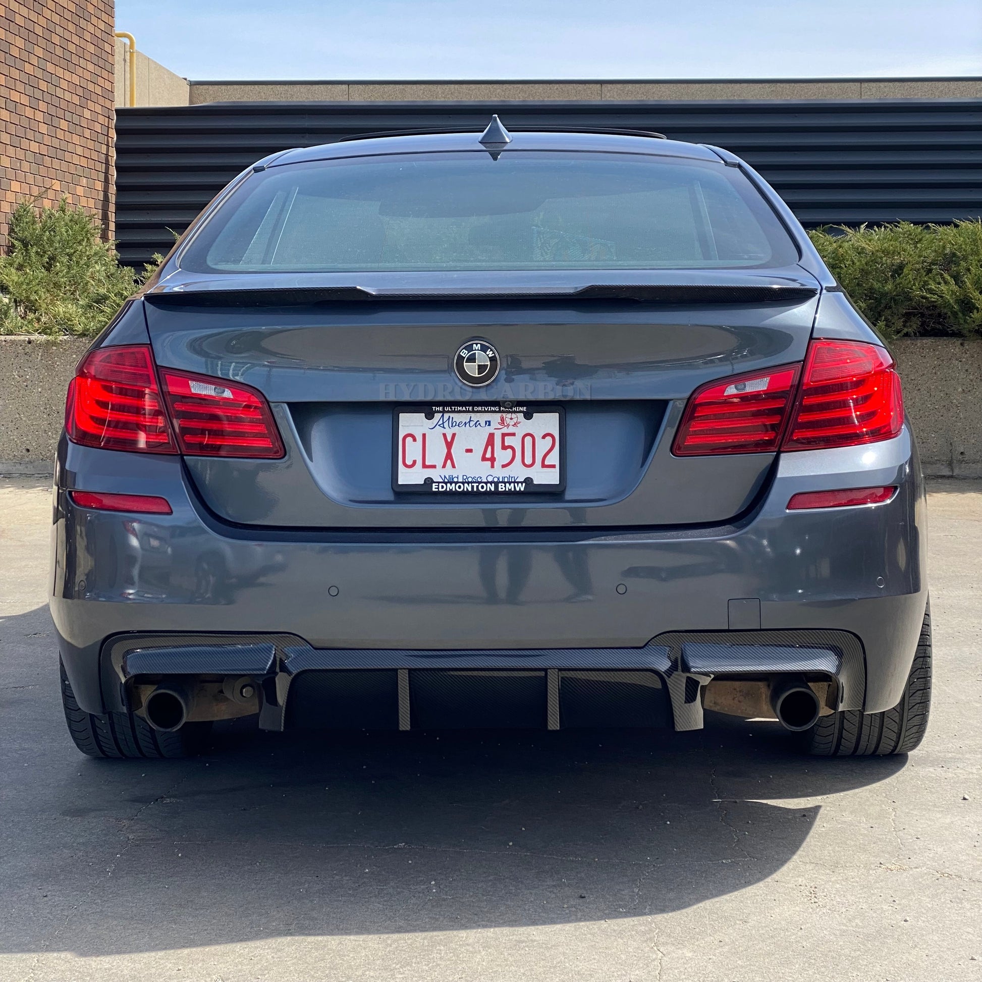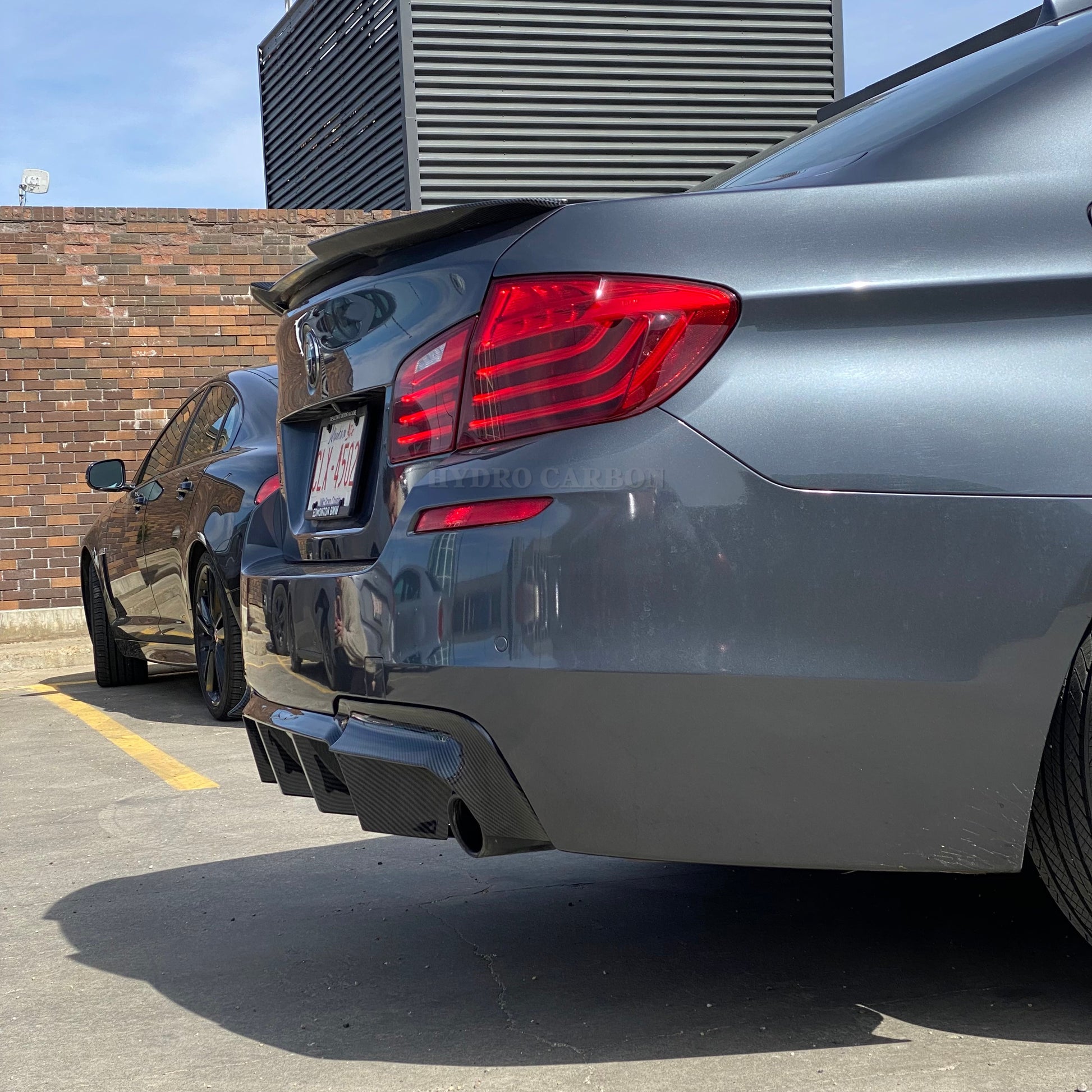FITS: F10 550I, 540I, 535I, 528I M SPORT BODY TYPE: SEDAN YEAR: 2011-2017 BRAND: HYDRO CARBON INSTALLATION: FULL OEM REPLACEMENTTransform the rear end of your m sport 5 Series into a visual masterpiece with this Carbon Fiber Rear Bumper Diffuser. Meticulously designed to complement your beast's contours, this diffuser is more than an upgrade, it's a bold statement of style and sophistication. Redefine the presence of your BMW F10, as the Carbon Fiber Rear Bumper Diffuser seamlessly combines form and function, setting the stage for an unmatched driving experience that merges artistry with performance.