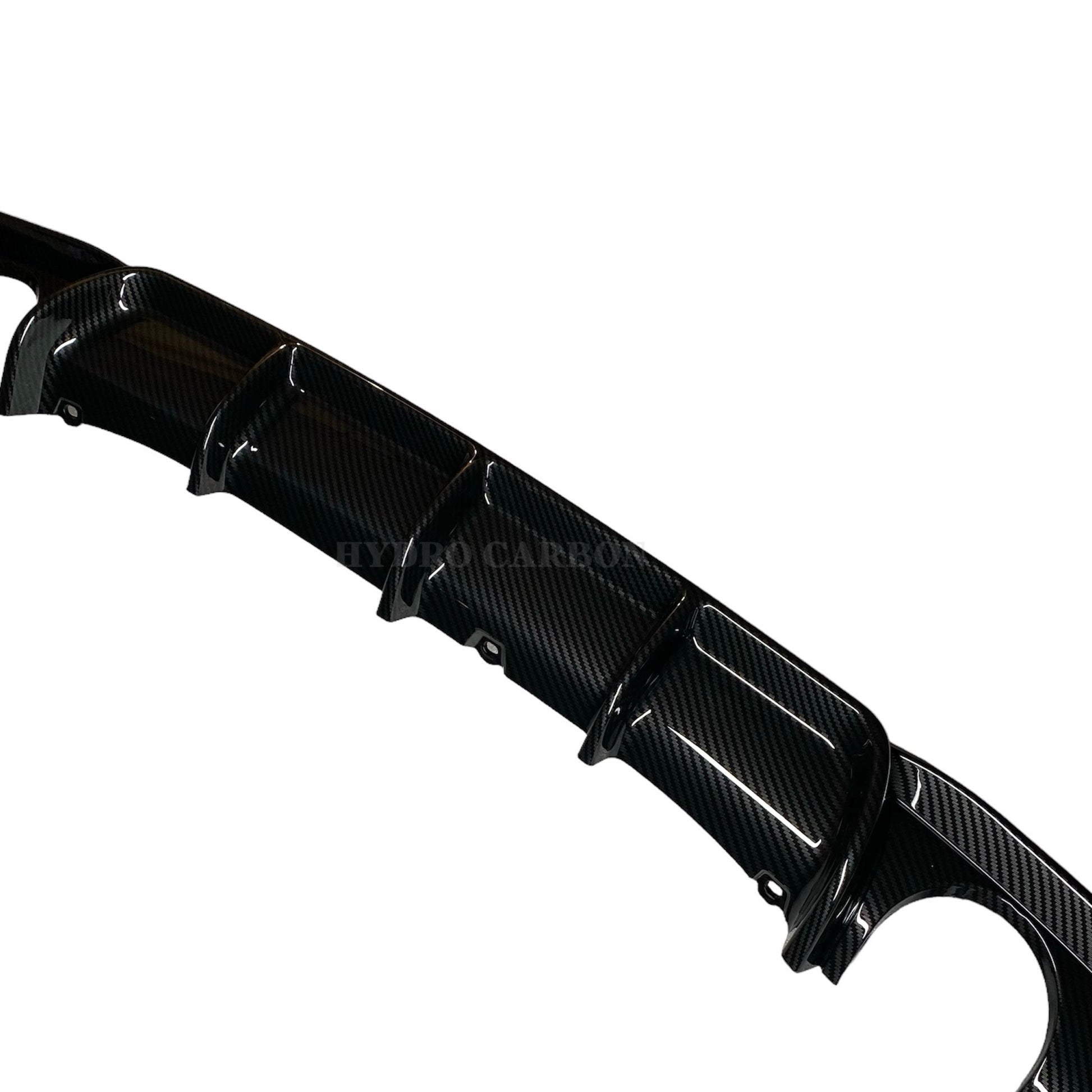 FITS: F30 340I/ 335I/ 330I/ 328I (M-SPORT) BODY TYPE: SEDAN YEAR: 2012-2018 BRAND: HYDRO CARBON INSTALLATION: DIRECT OEM REPLACEMENTUnleash the true essence of performance and elevate your BMW 3 Series Sedan F30 M Sport with our Carbon Fiber Rear Diffuser. Meticulously crafted for enthusiasts who demand the pinnacle of style and aerodynamics, this diffuser redefines the art of automotive enhancement. Make a bold statement as you command the road with the Carbon Fiber Rear Diffuser channeling airflow for enhanced stability and performance. From its distinctive fins to its flawless finish, every detail is a testament to the relentless pursuit of excellence, accentuating the dynamic character of your BMW.