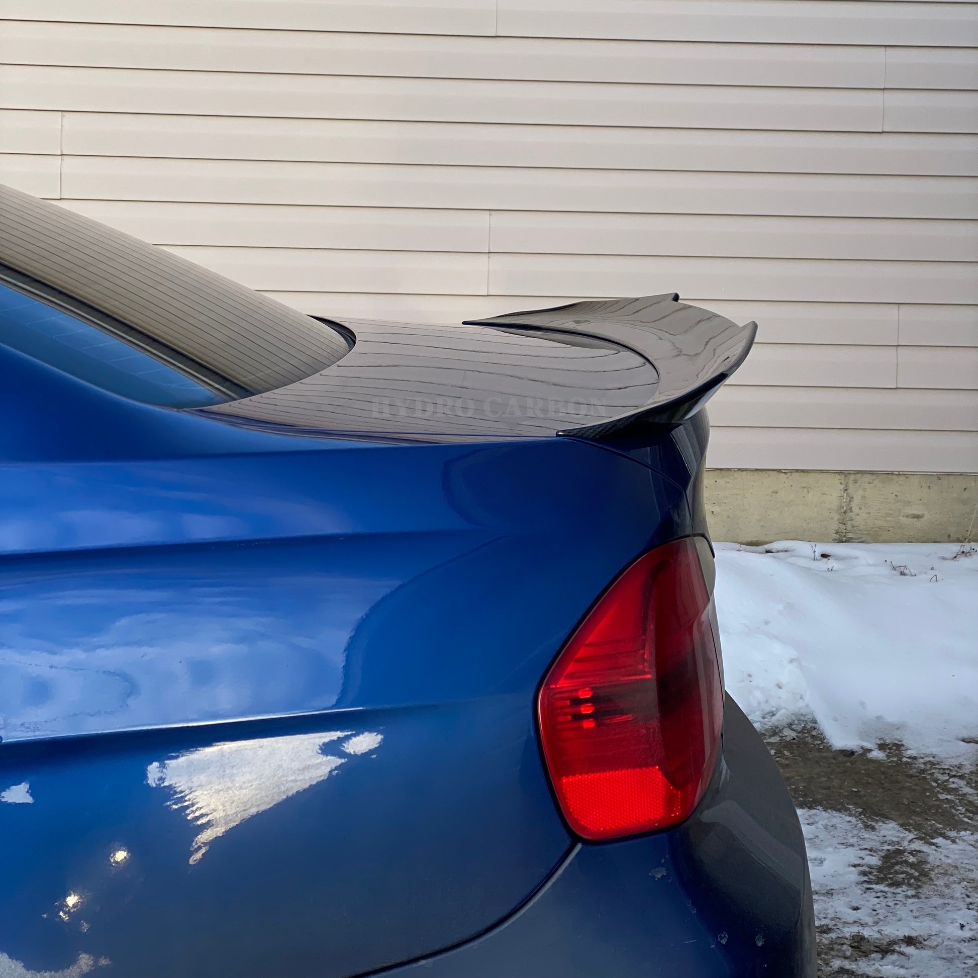FITS: E90 335I, 328I, 323I BODY TYPE: SEDAN YEAR: 2006-2011 BRAND: HYDRO CARBON INSTALLATION: DIRECT FIT USING 3M TAPEAccentuate the sleek lines of your E90 3 series sedan with our aggressive Carbon Fiber PSM Trunk Spoiler. Precision engineered to seamlessly integrate with the distinctive design of your BMW, this spoiler adds a touch of sporty sophistication. The carbon fiber construction not only enhances aesthetics but also contributes to the overall performance and aerodynamics.