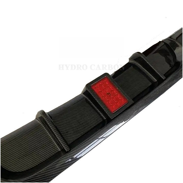 FITS: E90 335I, 328I (M SPORT) BODY TYPE: SEDAN YEAR: 2006-2011 BRAND: HYDRO CARBON INSTALL: FULL OEM REPLACEMENT (Professional Installation Recommended) Excellent FitmentImmerse your BMW E90 in a new era of style and performance with the newest Carbon Fiber Diffuser featuring an integrated LED 3rd Brake Light. Precision crafted to complement the sleek contours of your Bimmer, this diffuser not only enhances aesthetics it also elevates safety on the road. The carbon fiber construction delivers a touch of sophistication while the LED brake light adds a modern and dynamic flair.