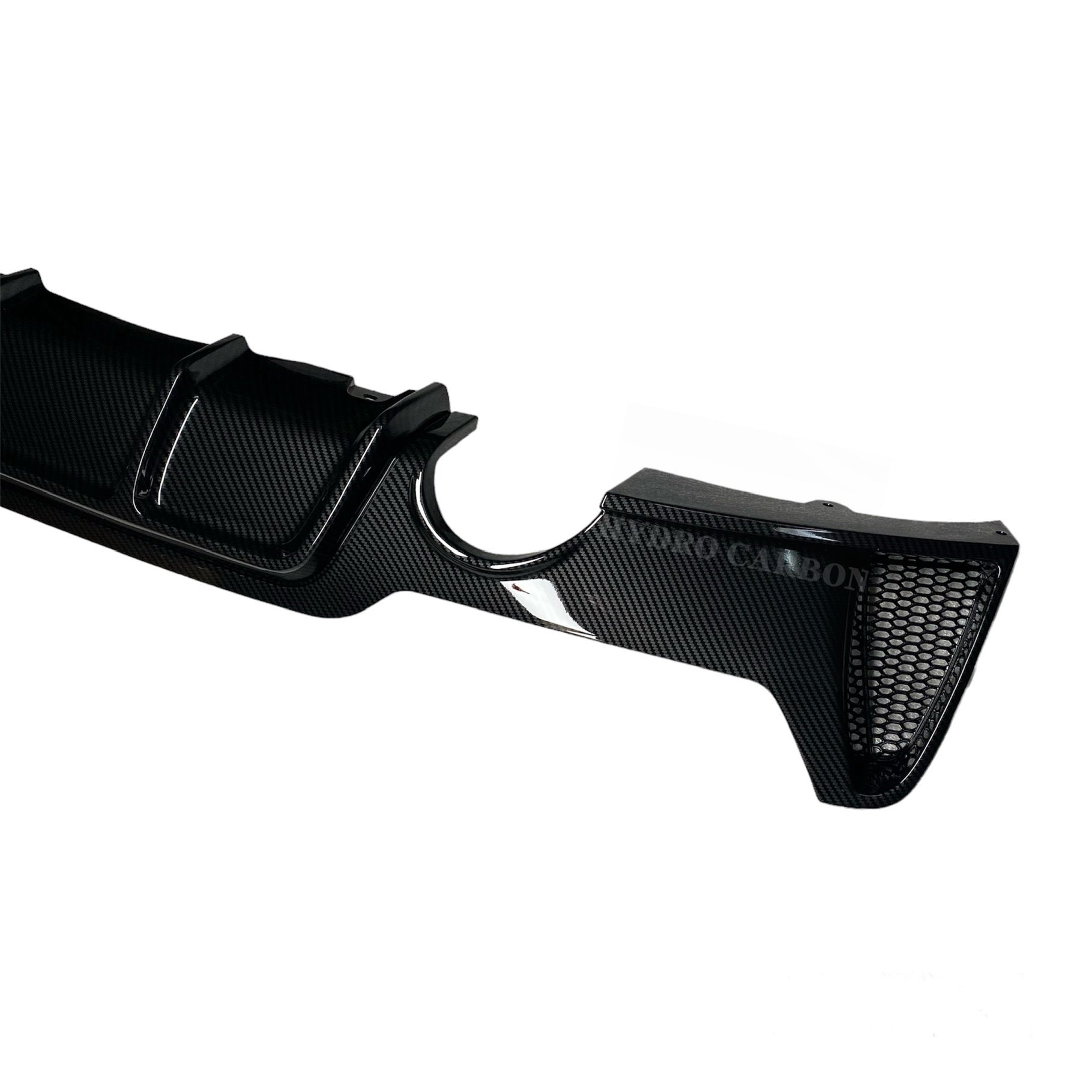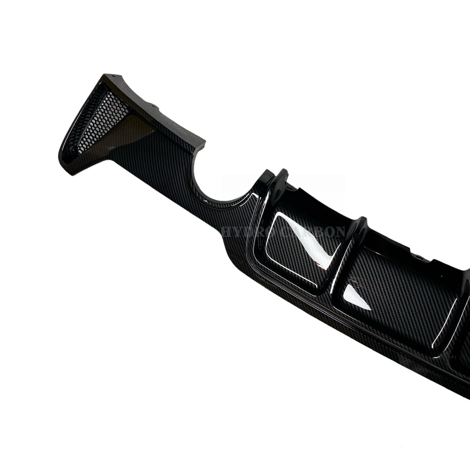 This BMW 4 Series Hydro Carbon diffuser is an exquisite automotive accessory designed to enhance the aesthetic appeal and aerodynamic performance of your F36, F33 or F32. Crafted with precision and attention to detail, this rear diffuser seamlessly integrates with the BMW's design, adding a touch of sophistication and sportiness to its rear profile. Functionally, the rear diffuser serves a crucial role in optimizing aerodynamics by managing airflow underneath the vehicle. This not only contributes to improved stability at higher speeds but also enhances overall driving performance.
