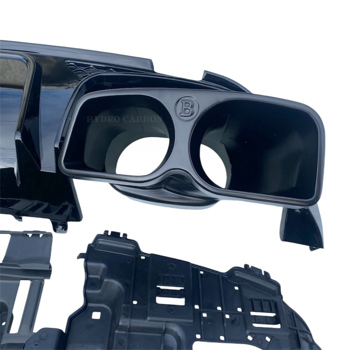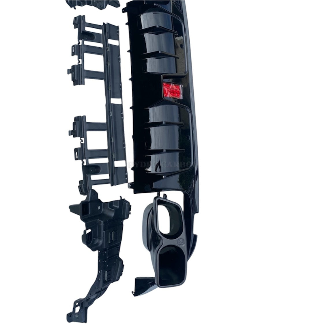 The LED diffuser on the Mercedes W205 C-Class with the AMG package is a refined yet sporty design element that enhances both the vehicle’s aesthetics and functionality. The diffuser is crafted with aerodynamic grooves and fins, which channel airflow to improve stability at higher speeds. The LED accents give the diffuser a modern, high-tech look, seamlessly blending style with performance, and reinforcing the AMG-inspired aggressive design cues of the W205 model.
